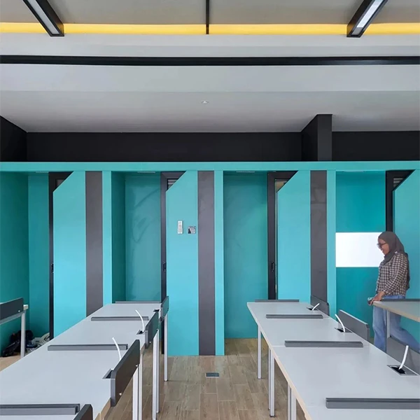 Interior kamar tidur dan mushola dengan konsep minimalis clean